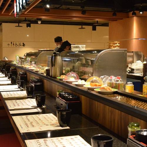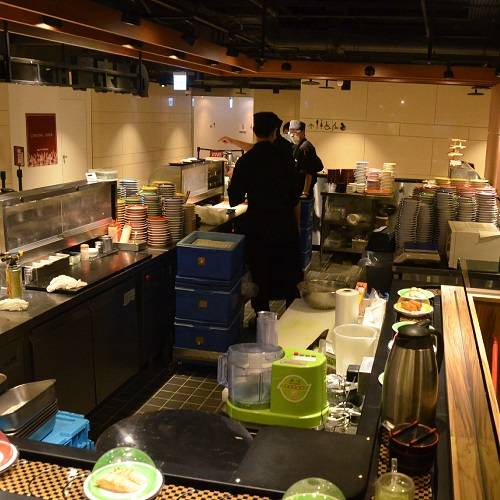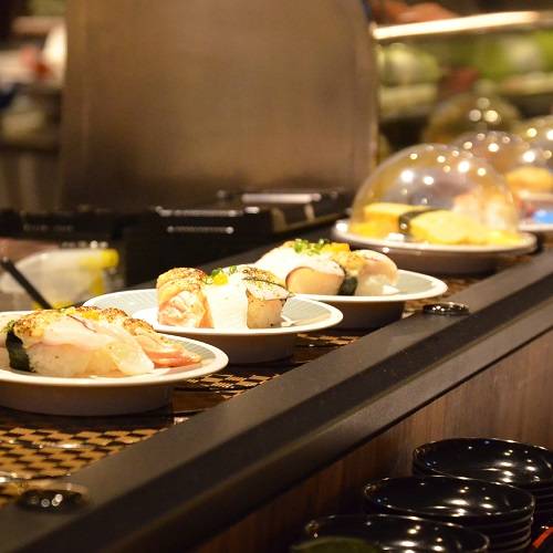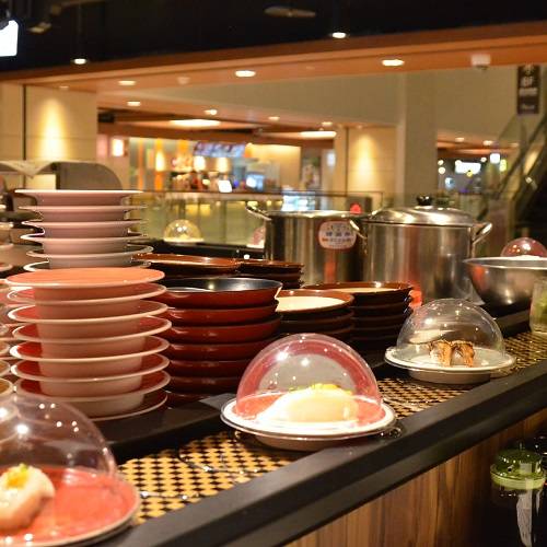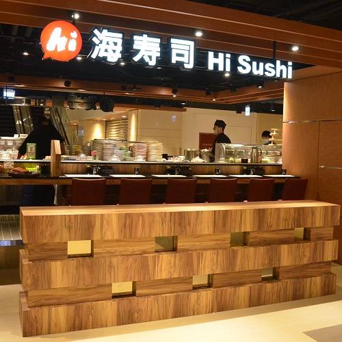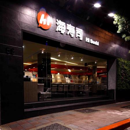 Restaurace Hi Sushi v Yonghe, Nové Tchaj-pej, byla otevřena v polovině června 2015. Točící stůl je vyroben z dřevěné barvy a je sladěn se stolem ve stejné barvě, což vytváří silnou japonskou atmosféru. Kromě sushi jsou k dispozici také sashimi, risotto a polévka. Ceny se pohybují od 30 jüanů do 300 jüanů, což může uspokojit chuť každého zákazníka.