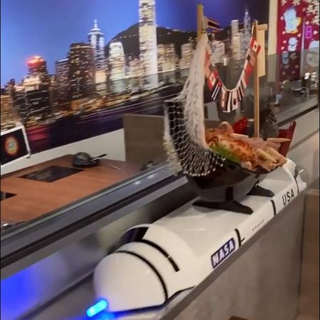 Lo spazio del H.K Railway Hot Pot non è grande, installano un binario e due razzi che corrono su entrambi i lati del binario per consegnare i pasti a tutti gli ospiti del ristorante. Il razzo può consegnare una grande nave piena di ingredienti per il hot pot, ogni volta che il razzo arriva al tavolo del commensale, non consegna solo cibo ma anche aspettative e sorprese dei commensali.