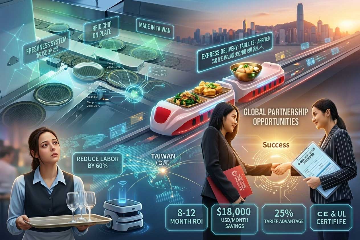 加入鸿匠,掌握2026 餐饮自动化浪潮。 MIT 制造、UL/CE/ISO9001 认证,北美市场25% 关税优势,协助您快速转单并稳定获利。