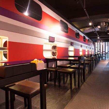 侍悟丸店内分成回转寿司区和智能送餐系统结合回转台用餐区,两种不一样的传送餐点方式,本质有些微的不同,回转台和送餐车的结合更贴近顾客需求,安装回转台让厨房可以先备好餐点,使得尖峰时刻涌入饥肠辘辘的客人可以先行止饿,避免大量涌入的订单导致厨房忙碌卡单让客人等待情形发生,垫胃的同时在平板点餐上进行点餐,与厨房连动餐点制作完成后,送餐车一键快速送餐。