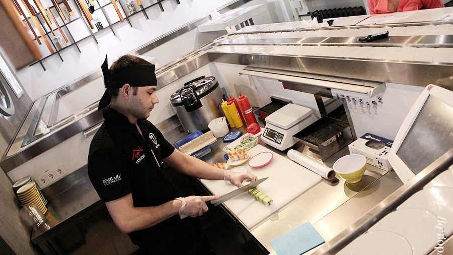 首先,「坐下就能吃」的特性幫餐廳搶時間,客人吃得快、走得也快,這種極高的翻桌率能讓你靠量取勝,輕鬆應付昂貴租金。加上「吧檯式設計」能把每寸空間利用到極致,同樣的坪數,你的座位數就是比別人多。