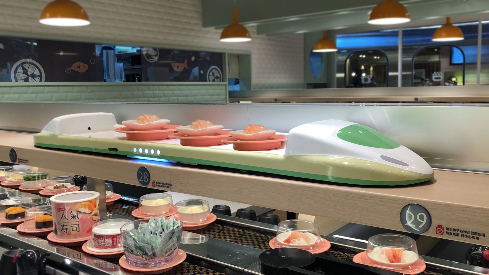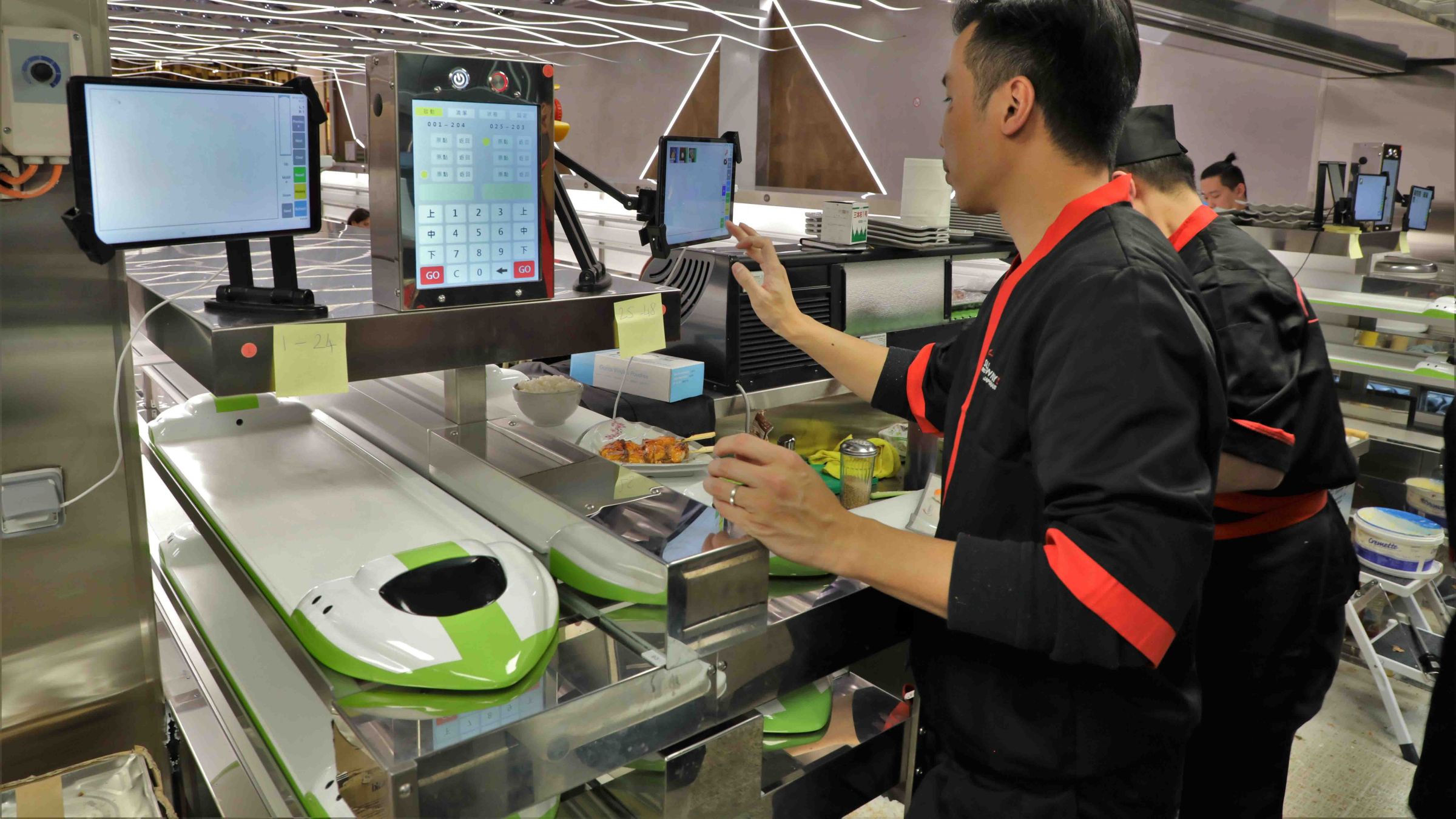 在現代迴轉壽司餐廳中,核心的 sushi train 系統只是營運效率的一部分。