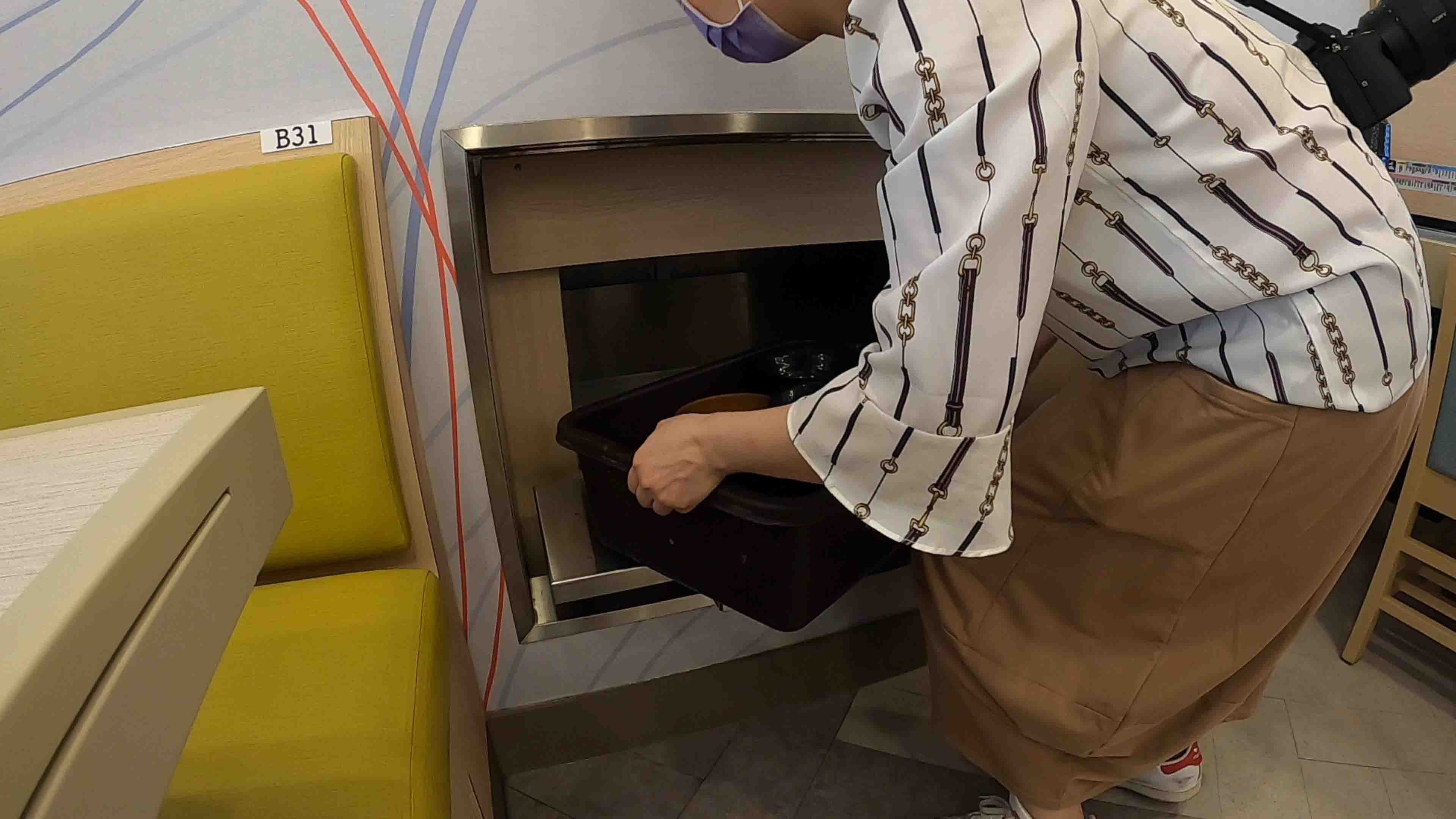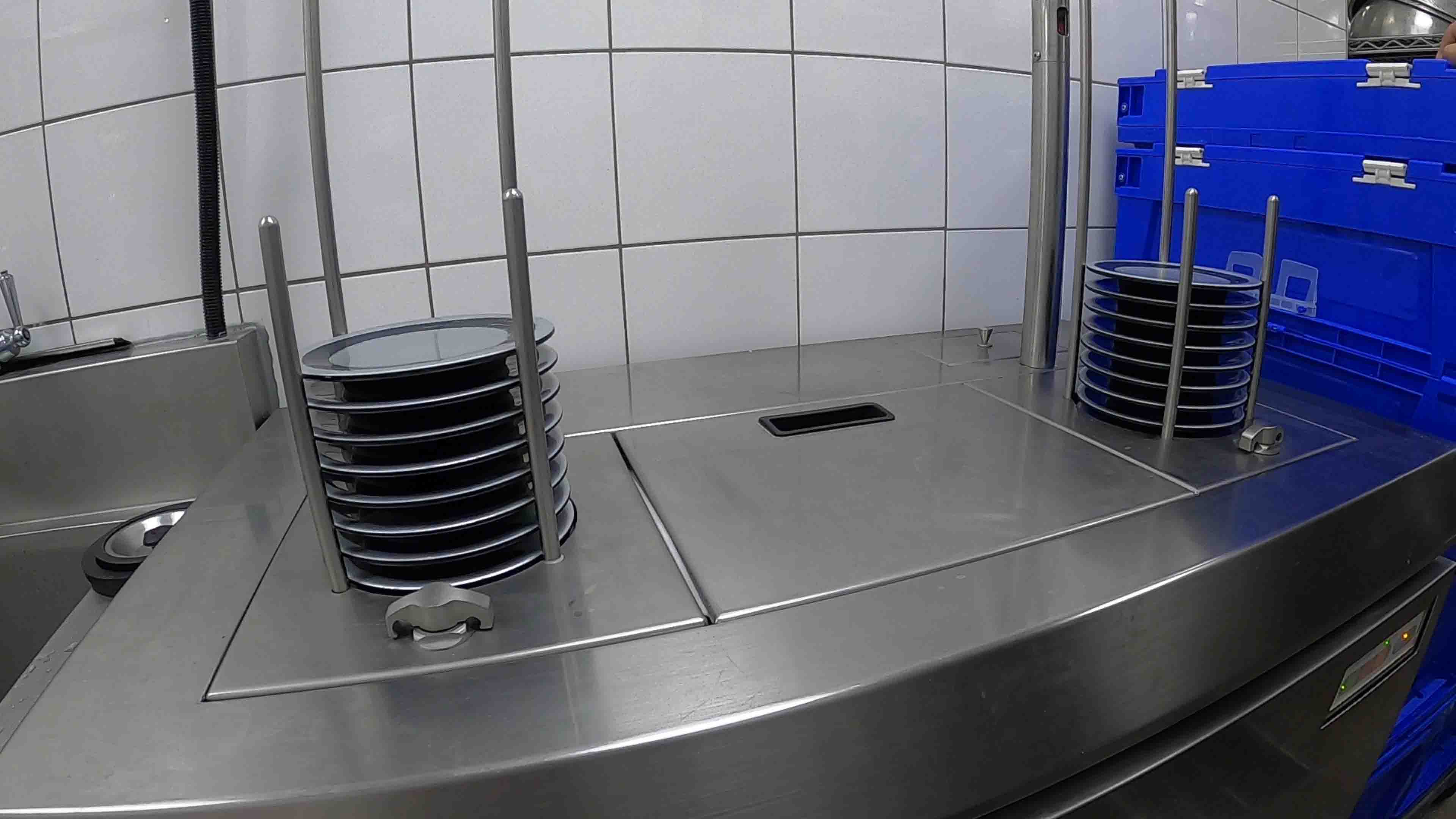 隱藏式收盤系統設置於每個座位前方,顧客用餐完畢後可直接將餐盤投入回收口。此設計能保持桌面整潔,避免盤子堆積,讓用餐空間更乾淨舒適,同時降低外場收桌壓力。