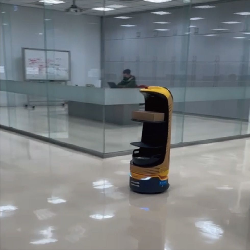 HolaBot 好啦配送機器人主打擁有傳呼和通知功能的配送機器人,以創新方法將自主移動機器人應用到企業、餐飲、醫療等等多個範疇。 永進YCM數位小幫手(好啦配送機器人)配備智能配送、高運載力、召喚功能和語音控制模組,助力企業提高各部門間文件配送的效率、亦能為參訪的來賓遞送茶水服務,打造智能企業。