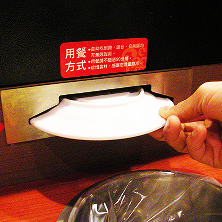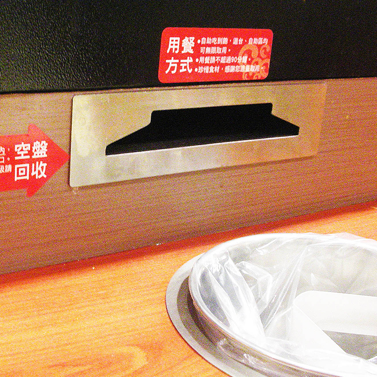 兩全其美的小秘訣就在『隱藏式收盤』功能的系統,不僅讓用餐桌面更加整齊也減少了服務人員來回收盤的時間,更重要的是害羞的顧客可以保守食量大小的小秘密唷!
