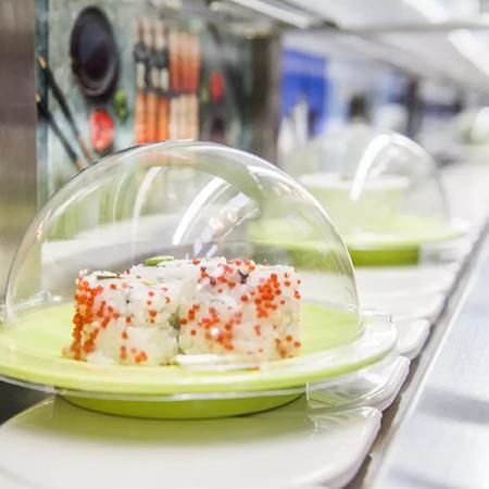 為了讓來訪的客人體驗多樣的送餐方式,位於加拿大多倫多的Hana Sushi Cafe同時採用鴻匠科技的直線送餐車與月牙鏈條迴轉台,客人不僅能隨時且隨心所欲地取用迴轉台的上餐點,也可以選擇享用新幹線直送的新鮮與美味;貼心體會與滿足各種客戶的需求。