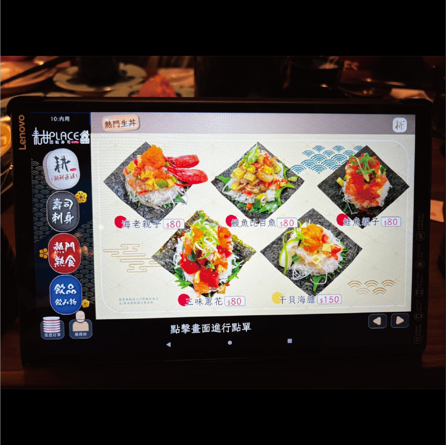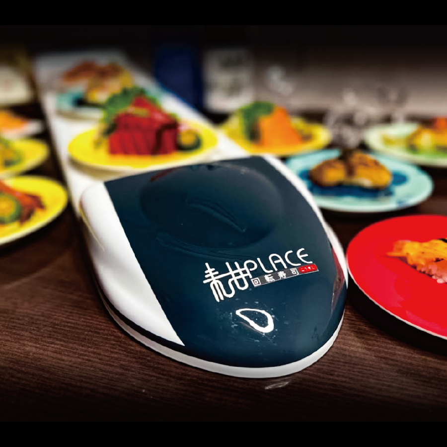 耕Place不只是迴轉壽司,餐廳內包廂式的格局,快速且精準穿梭在各包廂的送餐車,連結各包廂內的平板點餐系統,在享有古樸風格的餐廳環境內,還能結合現代科技化的餐點服務, 成為綜合不同飲食文化與特色的新據點。