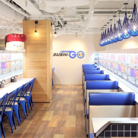 店裡的裝潢用色明亮,朝氣十足,搭配自動送餐系統高速的送餐效率,傳遞給用餐客人正向的體驗。