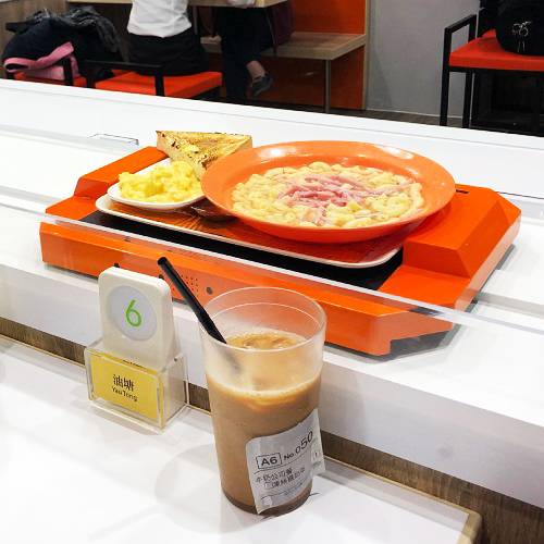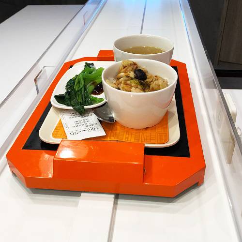 大茶飯港式飲茶餐廳以經典的香港料理作為餐廳的招牌菜,港式料理導入了新潮的「軌道送餐車」,因應座位的設計,此餐廳為可以轉彎式的軌道設計,科技化的送餐模式將更吸引著客人的目光以及創造話題性,而因為軌道可以直接從廚房端運送餐點,餐點可以直接運送到客人的面前,餐點可由客人自行拿取,運送系統使得人力配送的成本也相對下降。